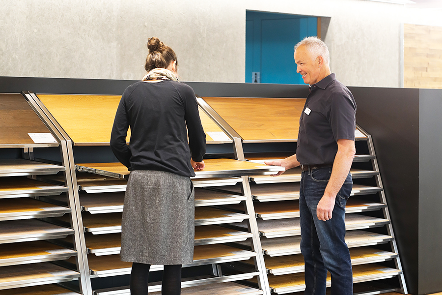 Gerne beraten wir Sie rund um die Themen Bodenbeläge, Wandverkleidungen, Decken, Akustiklösungen, Türen, Furnier, Decore und Terrassendielen. Nehmen Sie Handmuster Ihrer Wahl mit nach Hause und lassen Sie diese in Ruhe auf sich wirken.